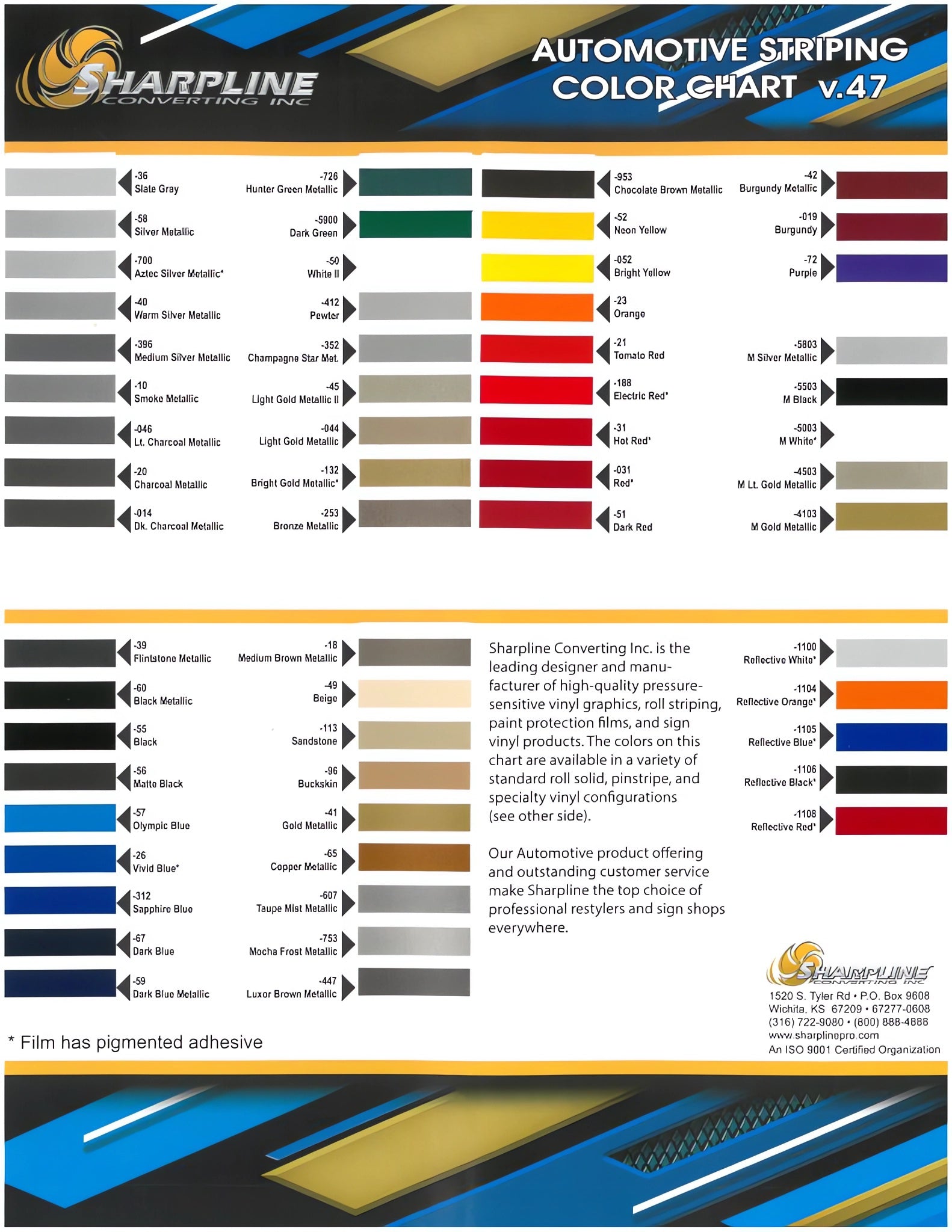 Sharpline has been a leading innovator in designing and manufacturing the automotive aftermarket’s highest quality graphic products. In addition to our exceptional automotive graphics, Sharpline produces hundreds of thousands of rolls of professional roll striping, available in over 70 popular colors and ready for immediate shipment.